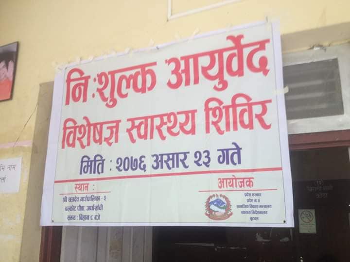 बल्कोट, अर्घाखाँची । स्वास्थ निर्देशनालय प्रदेश न. ५ को आयोजना र जिल्ला आर्युबेद स्वास्थ केन्द्र अर्घाखाँचीको समन्वयमा जिल्लाको छ्त्रदेब गाउँपालिकाको वडा न. २ बल्कोटमा एक दिने निशुल्क विशेषज्ञ आर्युबेद स्वास्थ शिबिर सम्पन्न भएको छ।