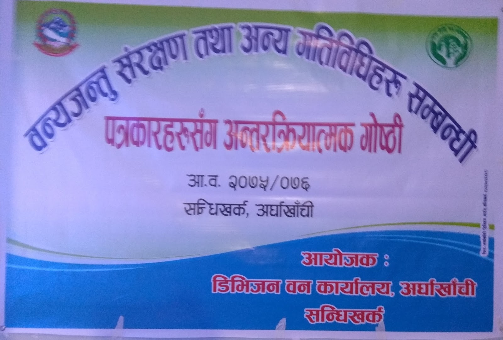 डिभिजन बन कार्यालय अर्घाखाँचीकाे आयाेजनामा बन्यजन्तु संरक्षण तथा अन्य बन गतिविधिहरूकाे बारेमा अन्तरक्रियात्मक गाेष्टी सन्धिखर्कमा सम्पन्न भएको हो ।