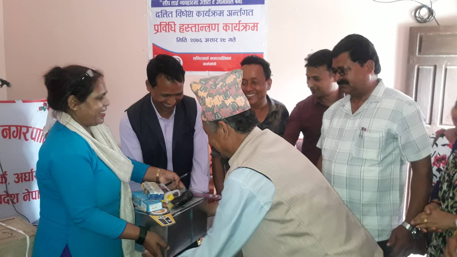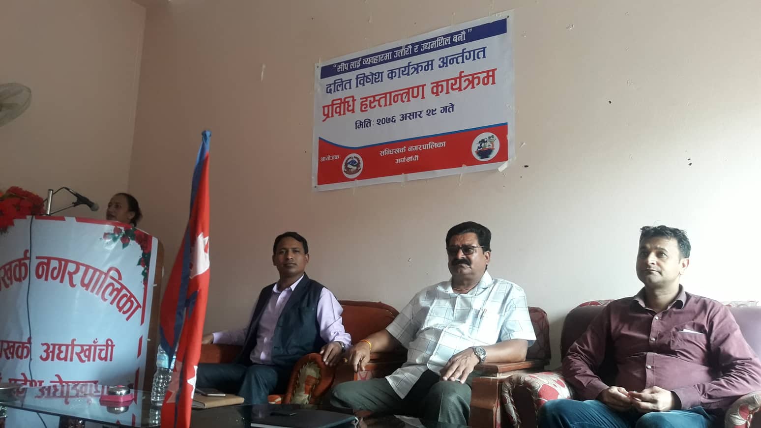 सन्धिखर्क, अर्घाखाँची (अर्घाखाँचीडट्कम) । सन्धिखर्क नगरपालिका अर्घाखाँचीको आयोजनामा दलित विशेष कार्यक्रम अन्तरगत प्रबिधि हस्तान्तरण कार्यक्रम सम्पन्न भएको छ ।
