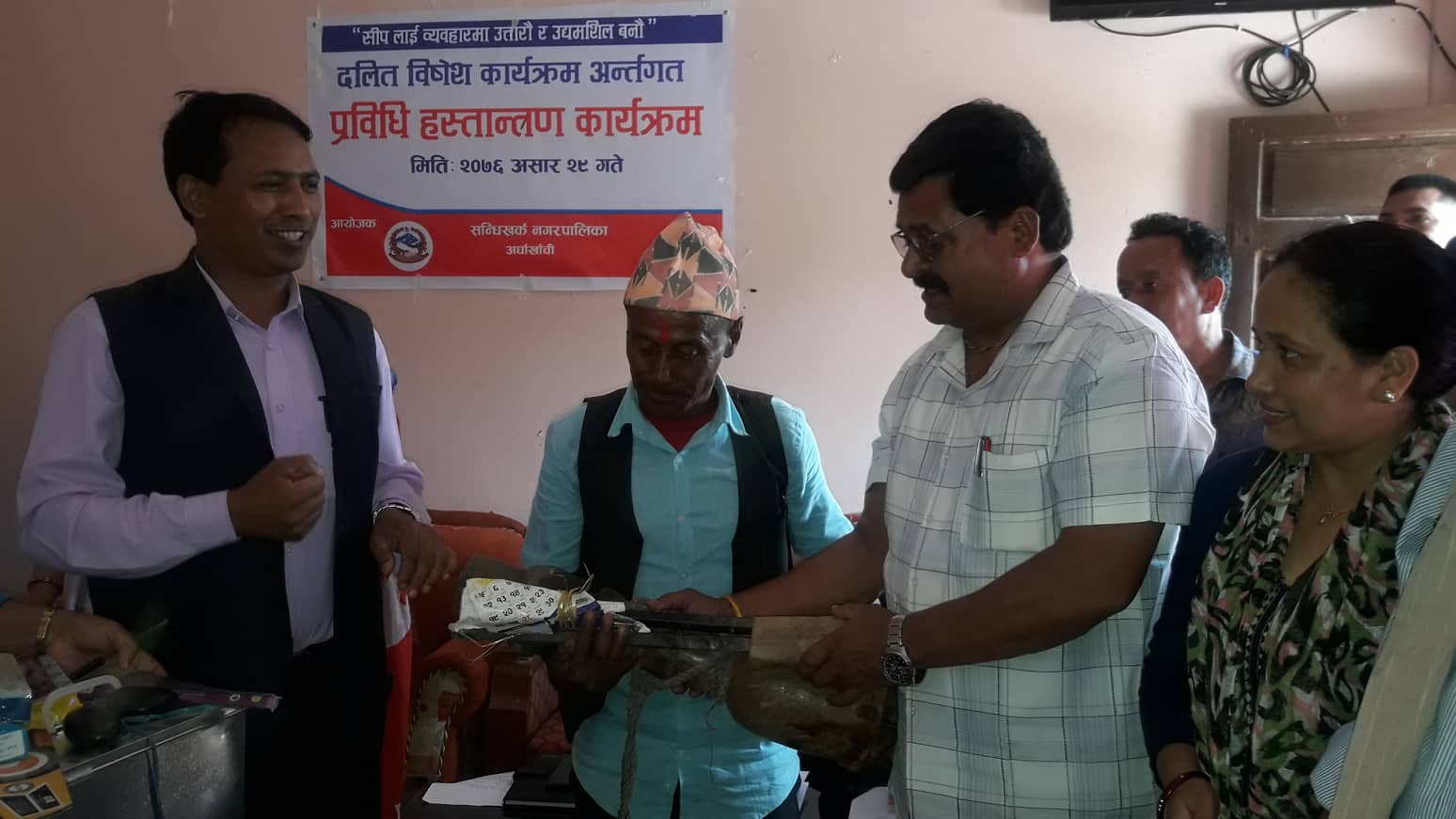 कार्यक्रममा नगरपालिका महिला बिकास साखा प्रमुख बेलकुमारी परियारको स्वागत मन्तब्य पुस्पा भुसालको सन्चालनमा सम्पन्न भएको कार्यक्रममा कपडा सिलाउने मेसिन मादल बनाउने मेसिन हस्तान्तरण गरिएको थियोे ।