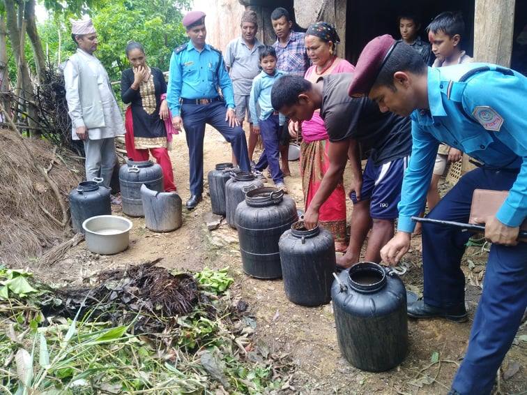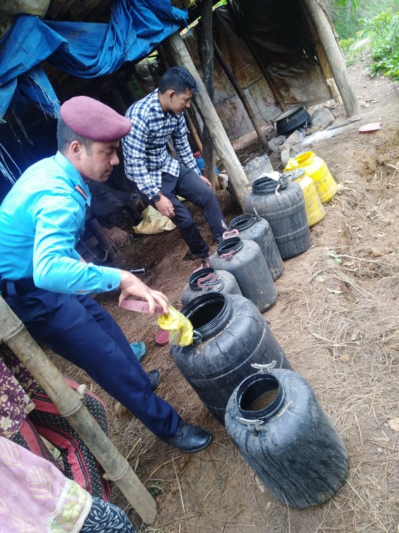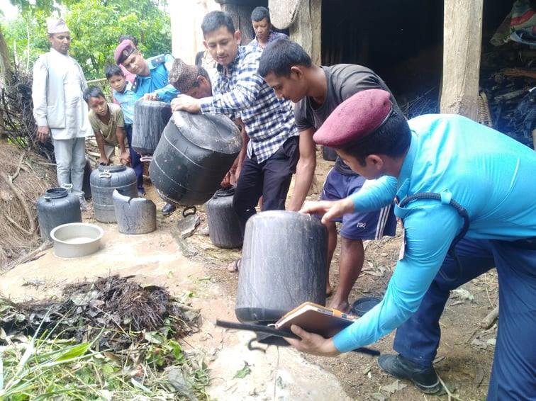 प्रहरी चौकी अर्घातोष अर्घाखाँचीको आयोजनामा प्र.ना.नि. गिताराम भुसालको कमाण्डमा ४ जना प्रहरी टोली र स्थानिबासिको सहयोगमा “समुदाय-प्रहरी साझेदारी कार्यक्रम” अन्तर्गत ठुलापोखरा स्थित धरमपानीकी बसन्ता राना र रिना सेनको घरमा रक्सी बनाउन प्रयोग गरिने कच्चा पदार्थ जाँड र पास १४ ड्रम गरी अनुमानित ३५० लिटर मदिरा बरामद गरि नष्ट गरेको हो ।