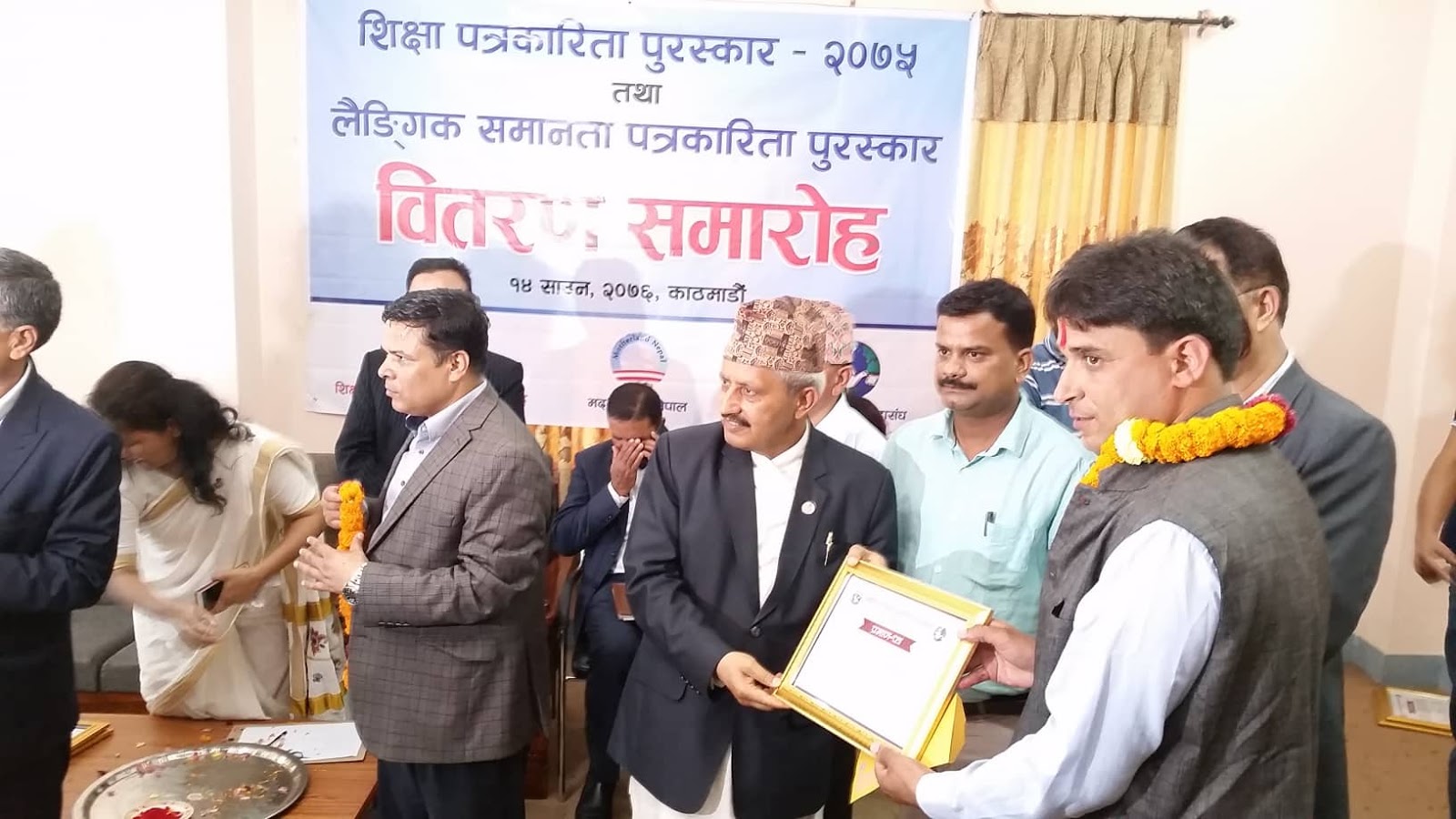 नेपाल पत्रकार महासंघ र शिक्षा मन्त्रालय, शिक्षा तथा मानव स्रोत विकास केन्द्रद्वारा संयुक्तरुपमा प्रदान गरिने रु. २०  हजार राशीको पुरस्कार आचार्यलाई प्रदान गरिएकाे हाे ।   नेपाल पत्रकार महासंघकाे केन्द्रीय कार्यलयमा भएको कार्यक्रममा शिक्षा मन्त्री गिरीराजमणि पाेख्रेलले नगद २० हजार सहित सम्मान पत्रले पुरस्कृत गर्नु भएको हाे ।