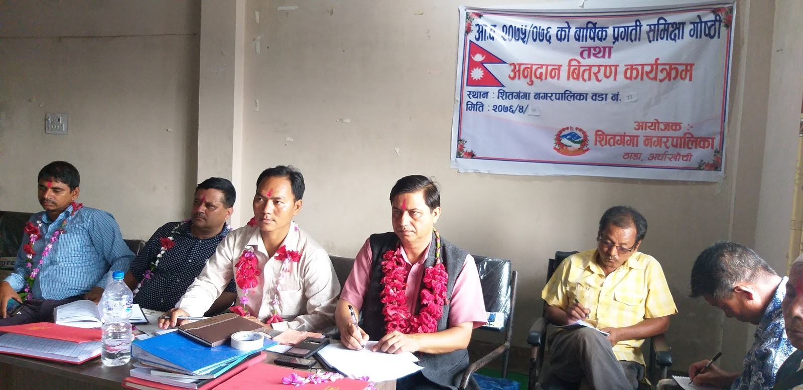 सिमा क्षेत्रमा रहेको शितगंगाको मौवाबारी, लुङग्री लगायत यति धेरै क्षेत्रफल बाहिरिएकोमा आफु चकित भएको भन्दै सिमा क्षेत्र बिवाद टुंगो लगाउन नगरपालिकाले यसलाई पहिलो मुद्धाको रूपमा अगाडि सारिएको बताउनुभयो । प्रमुख आसनबाट संबोधन गर्दै नगर प्रमुख अधिकारीले कार्य सम्पादन गर्ने शैलीमा जनप्रतिनिधी, उपभोक्ता र कर्मचारीको भूमिका एक बर्ष भित्रमा कस्तो रह्यो भन्ने बारेमा छलफल गरी निष्कर्षको आधारमा अगाडी बढ्नका लागि १४ ओटै वडामा बार्षिक प्रगती समिक्षा तथा कृषि अनुदान कार्यक्रम सुरु गरिएको बताए ।