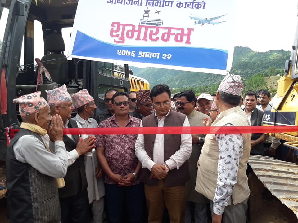 विमानस्थल निर्माण कार्यको पुर्ब उपप्रधानमन्त्री तथा प्रतिनिधि सभा सदस्य टोपबहादुर रायमाझीले रिवन काटी शुभारम्भ गर्नु भएको थियो ।