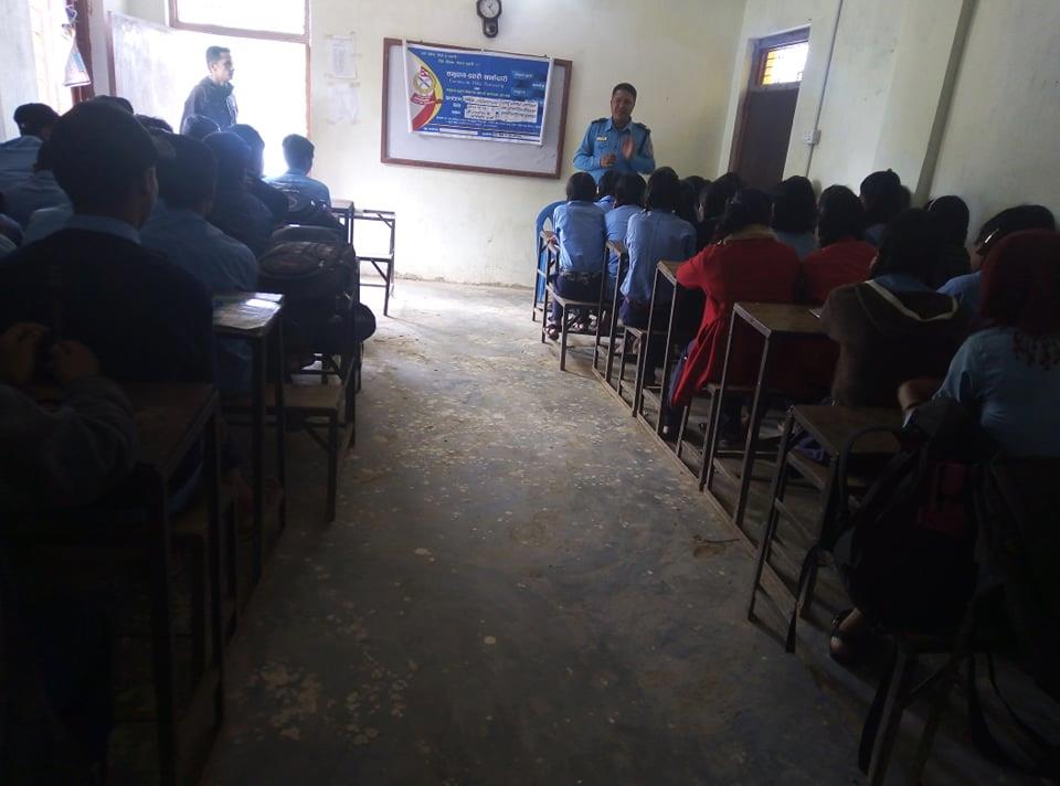 कार्यक्रममा प्र.स.नि. सुर्य प्रसाद पन्थीले ट्राफिक नियम, लागु औषध नियन्त्रण सम्बन्धी बिषयमा सचेतना मुलक प्रशिक्षण कार्यक्रम सचालन गर्नु भएको थियो ।