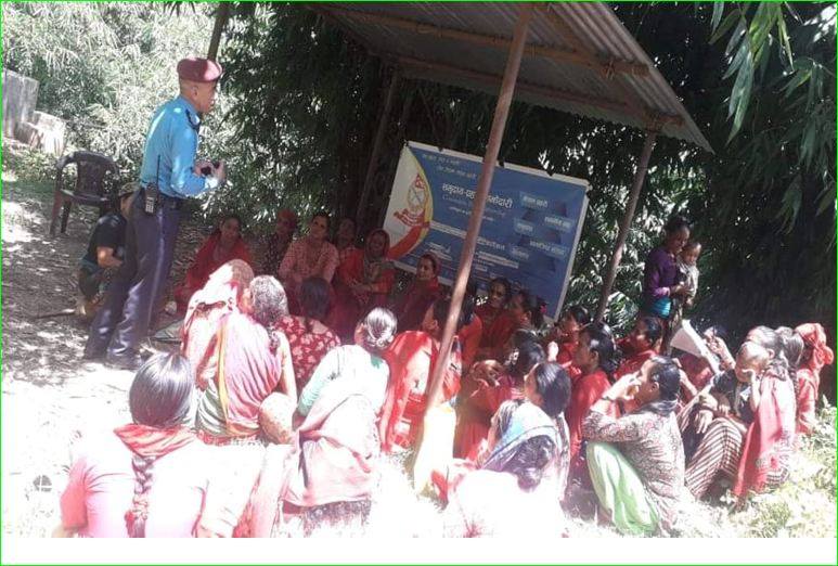 प्रहरी नायब निरीक्षक घन बहादुर बोहराले लैङ्गिक हिंसा, घरेलु हिंसा, ज.ज.क., यौनजन्य हिंसा, आत्म हत्या, बाल-बहु विवाह, अन्मेल विवाह र हरितालिका तिज विशेष कार्यक्रममा ध्यान दिनु पर्ने तथा अपनाईने सुरक्षा सम्बन्धी छलफल तथा सचेतना मुलक कार्यक्रम गर्नु भएको थियो ।