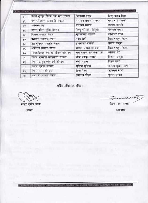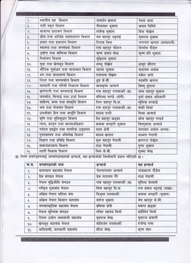 यस्तै प्रदेश निर्वाचन क्षेत्र नम्बर-१ को अध्यक्षमा प्रकाश ज्ञवाली र सचिबमा धुब्रराज पाण्डे तथा प्रदेश क्षेत्र नम्बर-२ को अध्यक्षमा जिवनारायण कोईराला र सचिवमा जाकिर हुसेनलाई जिम्मेवारी तोकिएको छ ।