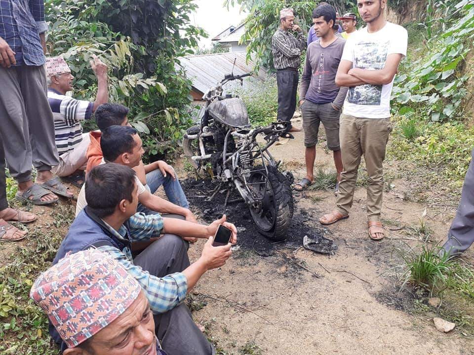 आगजनी गर्नेको खोजि कार्य भैरहेको बिष्टले बताए । बिहान करीब साढे ४ देखी पौने ५ बजेको समयमा मोटरसाईकलमा आगजनि भएको हुनसक्ने अनुमान गरेको अध्यक्ष पाण्डेले टेलिफोन मार्फत जानकारी दिए ।