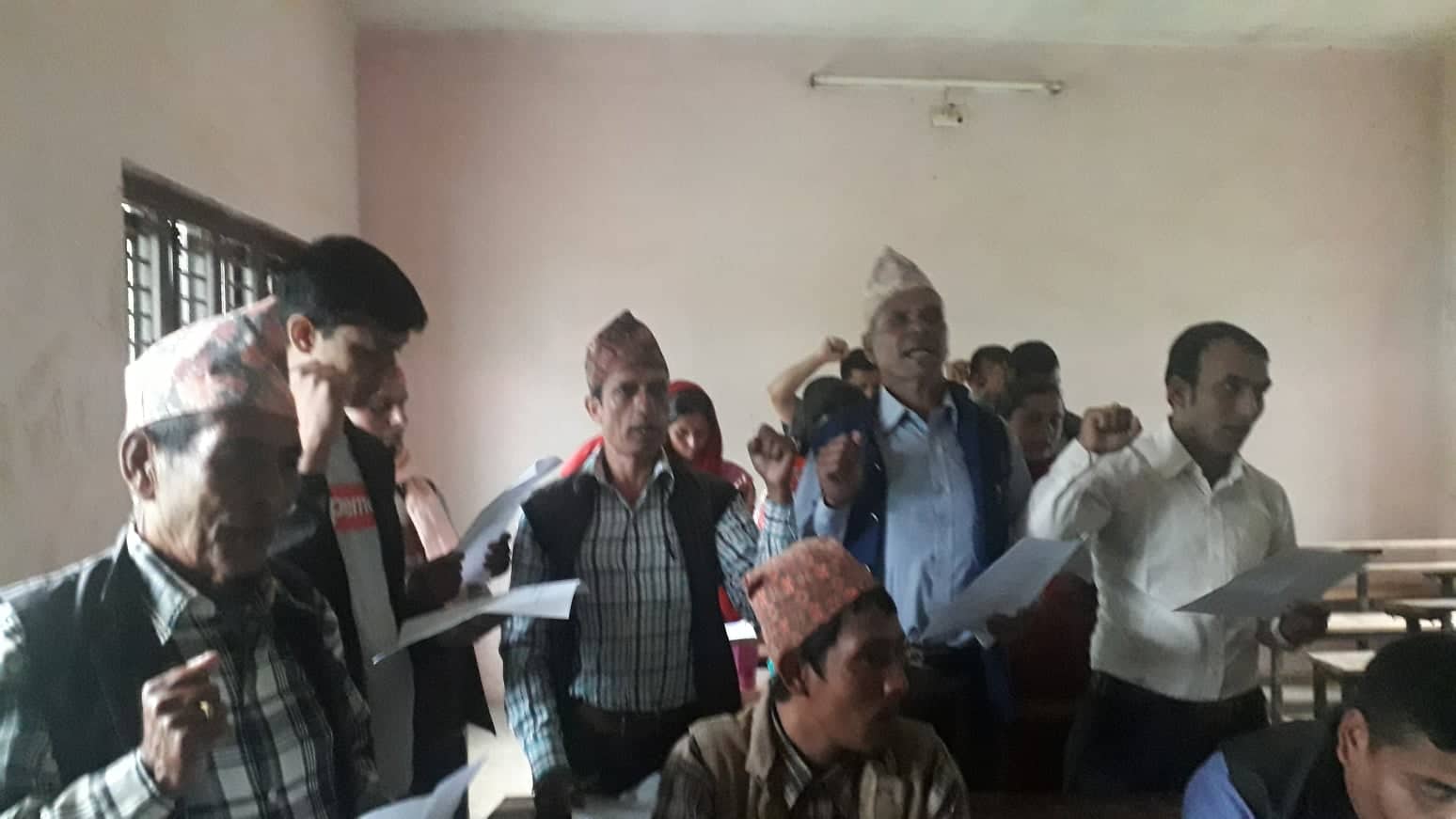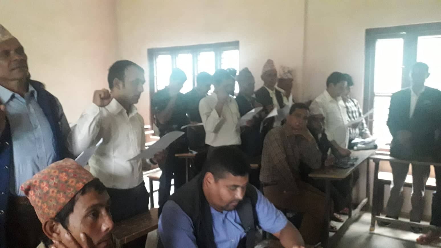 कार्यक्रममा प्रमुख अतिथि आचार्यले वडा कमिटीका अध्यक्ष शोभाकर भुसाल ,सचिव हरिबहादुर चौहान डाल बहादुर चौहान लगायत सदस्य हरुलाई सपथ ग्रहण गराउनु भएको थियो ।