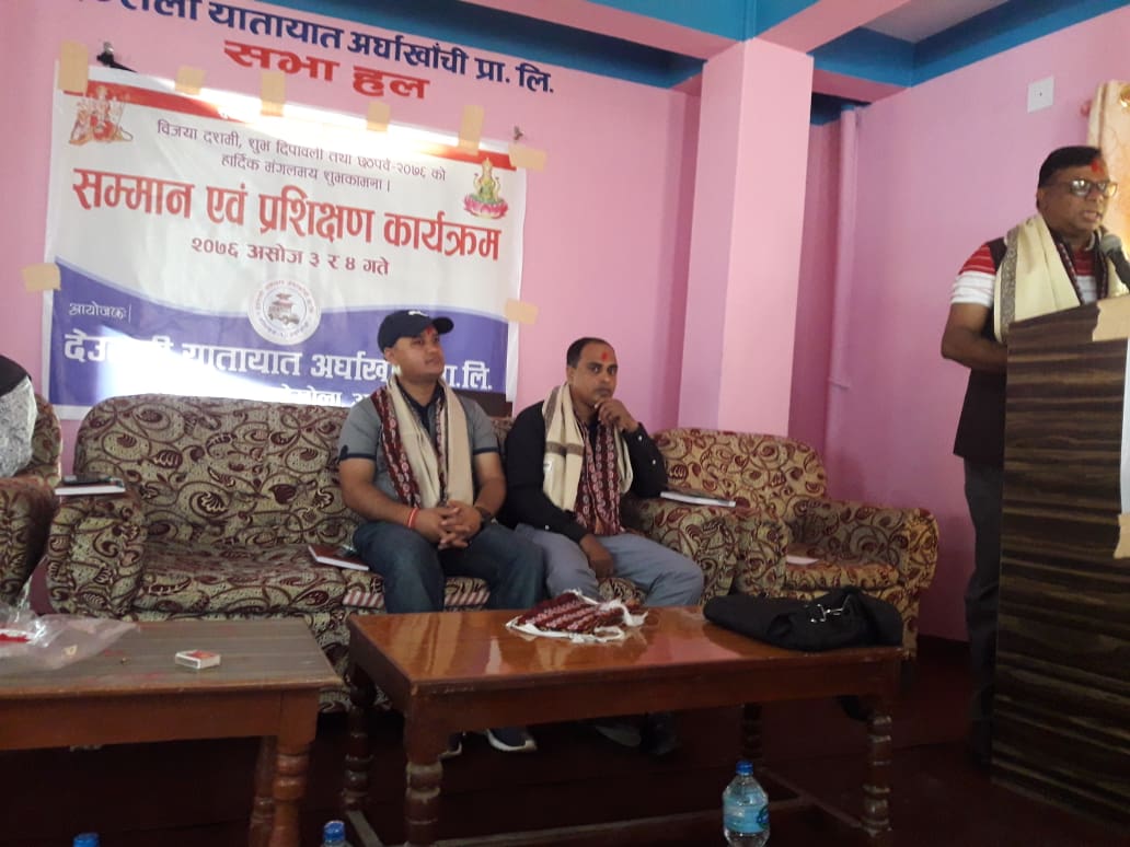 सन्धिखर्क, अर्घाखाँची । सुरक्षित र आरामदायी यात्रा हाम्रो प्रतिवद्धता भन्ने मुल नाराका साथ देउराली यातायात अर्घाखाँचीले प्रालीले चालक सहचालक र गाडी मालिकहरुलाई २ दिने प्रशिक्षण कार्यक्रम प्रालिको केन्दिय कार्यालय सन्धिखर्कमा सुरु गरेको छ ।