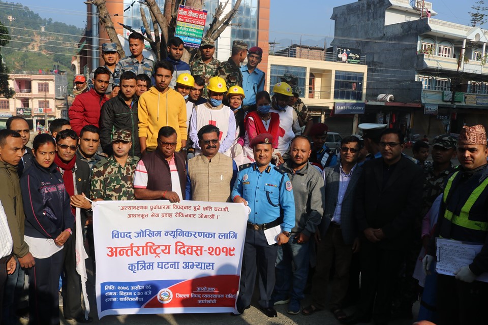 सन्धिखर्क, अर्घाखाँची २०७६ असाेज २६ । अर्घाखाँची जिल्लाको सन्धिखर्कमा विपद् जोखिम न्युनिकरणका लागि अन्तरराष्ट्रिय दिवस २०१९ को अवसरमा जिल्ला दैबिक बिपद ब्यबस्थापन समिति अर्घाखाँचीले सन्धिखर्कमा दुर्घटना न्युनिकरण सम्बन्धि चेतना मुलक कार्यक्रम सम्पन्न गरेको छ ।