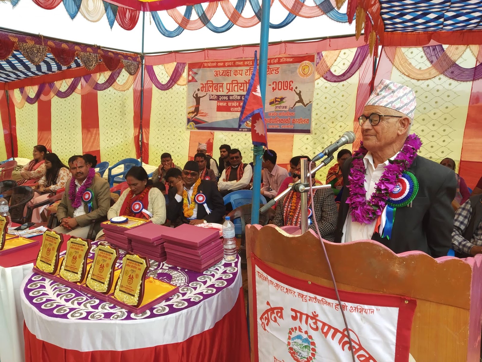कार्यक्रममा प्रमुख जिल्ला अधिकारी विजयराज पौडेल, छत्रदेव गाउँपालिकाका उपाध्यक्ष तुलसादेवी श्रेष्ठ, प्रमुख प्रशासकीय अधिकृत खिमनन्द भुसाल, जिल्ला खेलकुद विकास समितिका निबर्तमान अध्यक्ष सिद्धि प्रसाद भुसाल , पत्रकार विरेन्द्र केसी लगायतले मन्तब्य राख्नु भएको थियो ।
