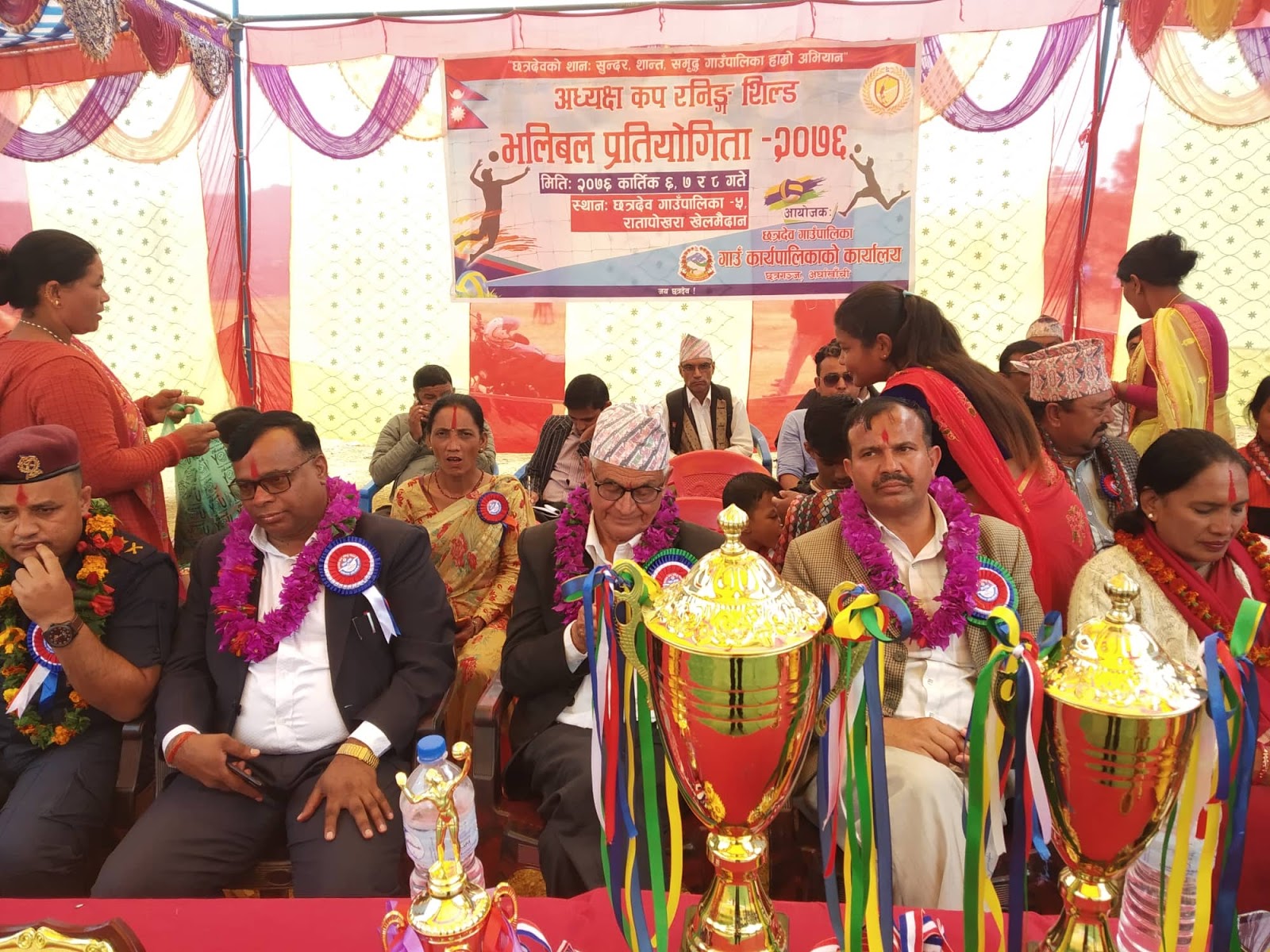 नबनिर्मित रातापोखराको खेलमैदानमा भएको भलिबल प्रतियोगितामा खेल हेर्नको लागि छत्रदेब गाउँपालिकाका सयौँ स्थानियहरु उपस्थि भएका थिए ।