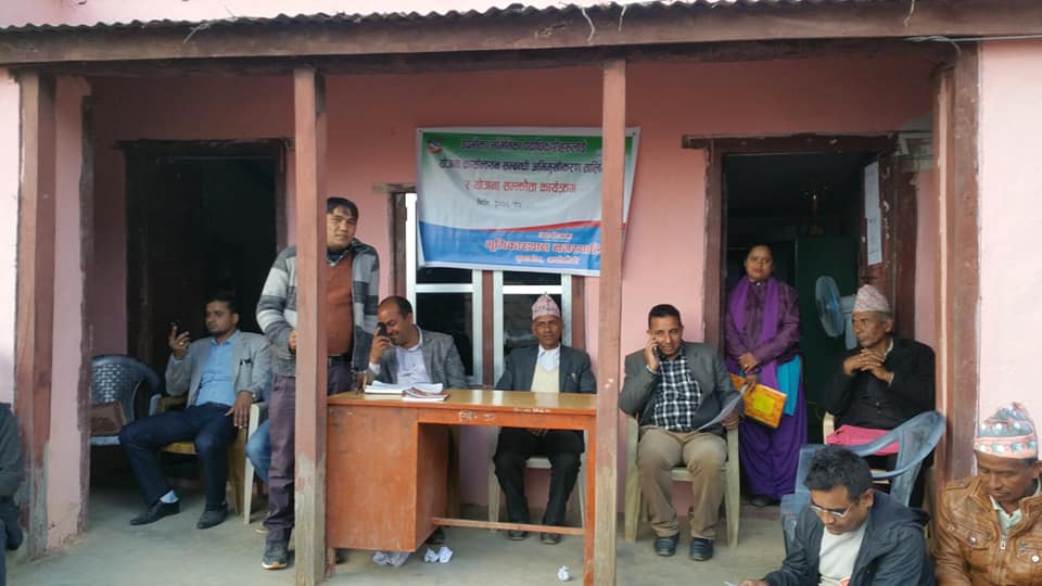 वार्डहरुमा स्थानियस्तरमै उपभाेक्ता समितिहरुसँग याेजनाहरु सम्झाैता गर्ने, कार्यादेश दिने, बैंक खाताहरु खाेल्ने, याेजना कार्यान्वयन सम्बन्धि अभिमूखिकरण कार्यक्रम सम्पन्न भएको हो ।