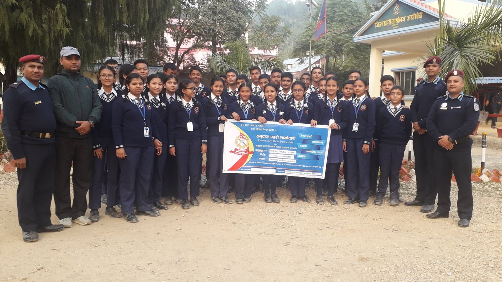 उक्त कार्यक्रममा प्रहरी प्रमुखसँग भेटघाट प्रहरी कार्यालय भवन अवलोकन, नागरिक सहायता कक्ष, प्रहरी परिचालन कक्ष (१०० र १०४ को प्रयोग ), अपराध अनुसन्धान कार्य, महिला बालबालिका तथा जेष्ठ नागरिक सेवा केन्द्र, जनचेतना मुलक भिडियो प्रदर्शन, ट्राफिक नियम, घरेलु हिंसा, लैगिक हिंसा, महिला हिंसा, लागुऔषध, बिबाह, साईबर अपराध, बिबाह, जवरजस्ती करणी जस्ता बिषयमा यस कार्यालयका कार्यालय प्रमुख प्रहरी नायव उपरीक्षक प्रकाश बिष्ट , प्र.नि. प्रकाश खत्री र प्र.नि. सुरेश सुवेदीले प्रशिक्षण दिनु भएको थियो ।