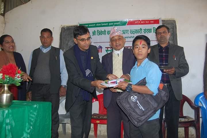 आठौ स्थापना दिवस अवसरमा त्रिवेणी बचत तथा ऋण सहकारी संस्था लिमिटेड सन्धिखर्क अर्घाखाँचीले गंगा आधारभूत विद्यालय चुत्रावेसीमा रहेका गरिब तथा जेहेन्दार विद्यार्थीहरुलाइ शैक्षिक सामाग्री प्रदान गरेको थियो ।