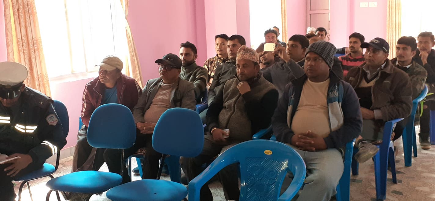चुत्राबेसीको गुण्टेखोलामा चालक तथा सहचालकहरुलाई दुर्घटना न्युनिकरण सम्बन्धी प्रशिक्षण कार्यक्रम सम्पन्न (तस्बिर सहित)