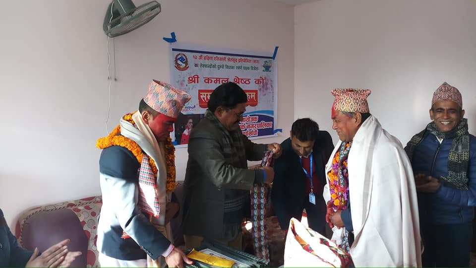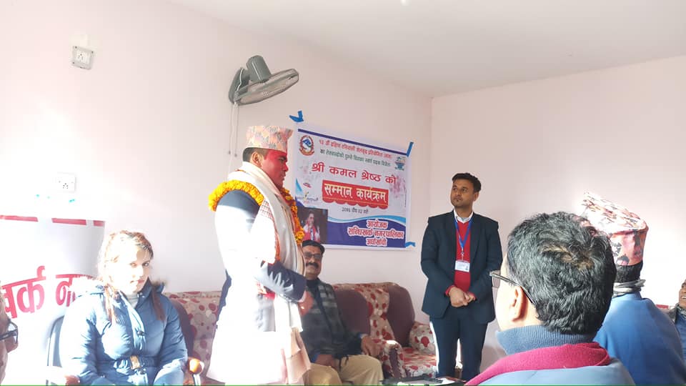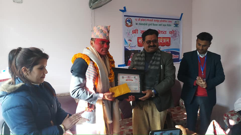 सन्धिखर्क नगरपालिकामा आयोजित एक कार्यक्रममा नगरप्रमुख कमल प्रसाद भुसालले श्रेष्ठलाई नगद रू २५ हजार सहित सम्मान गरेका हुन् ।