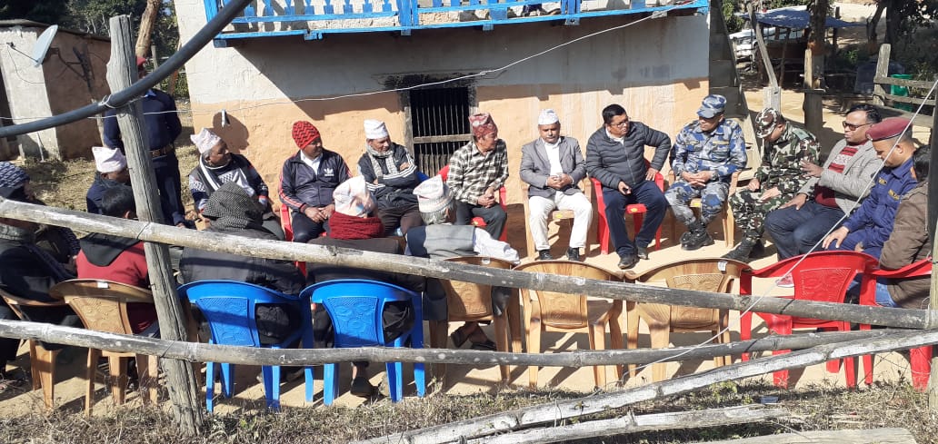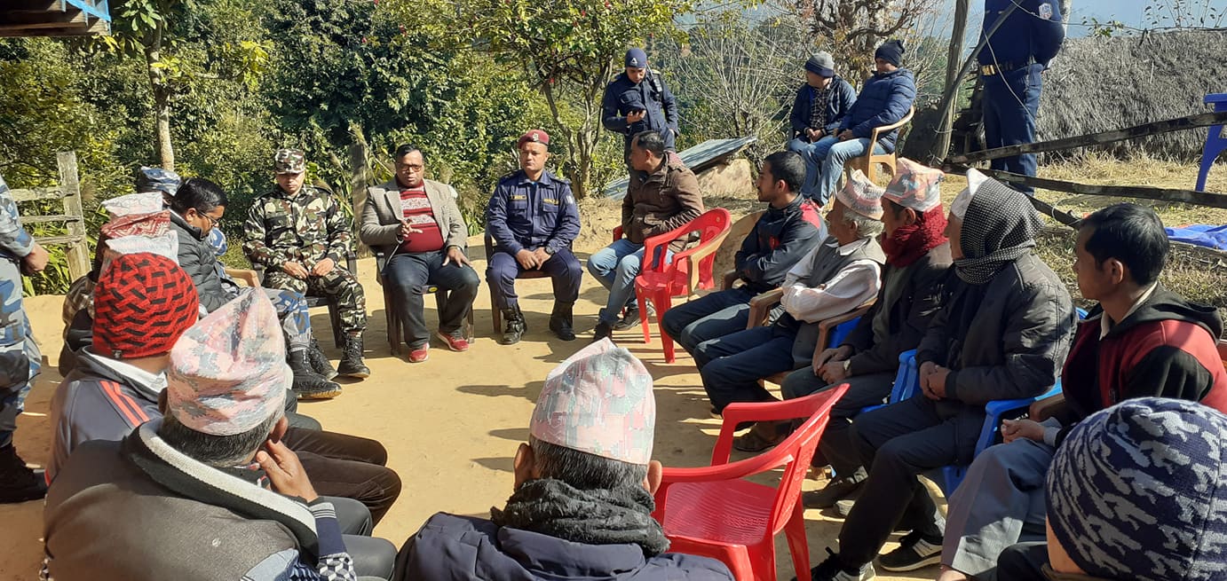 पछिल्लो समय जिल्लाका हरेक क्षेत्रहरुमा सुरक्षा समितिले गाउँ गाउँमा पुगि स्थानीयहरुसंग व्यापक अन्तरक्रिया तथा छलफल गर्दै आइरहेको छ।