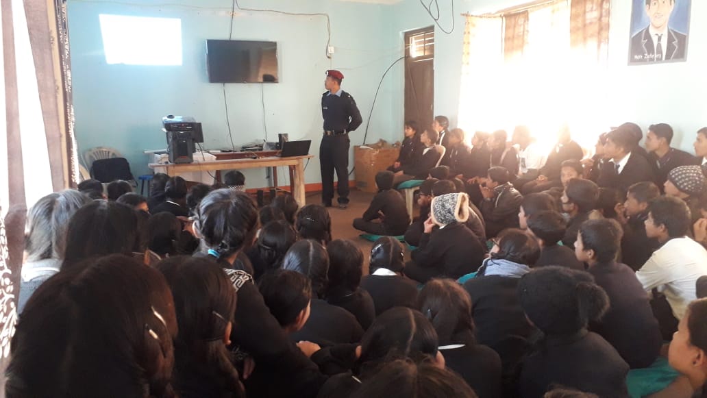 जिल्ला प्रहरी कार्यालय अर्घाखाँचीको आयोजनामा “समुदाय-प्रहरी साझेदारी”कार्यक्रम अनुसार “प्रहरी-बिद्यालय सम्पर्क कार्यक्रम” अन्तर्गत चुत्रावेशी स्थित श्री जनज्योती माध्यमिक बिद्यालयका कक्षा ९ मा अध्ययनरत अं.११५ जना छात्र-छात्रा तथा शिक्षक-शिक्षिकालाई प्र.स.नि.सन्तोष के.सी.ले लागु औषध तथा मादक पदार्थ : प्रकार, असर, बच्ने उपायहरु तथा कानूनी व्यबस्था सम्बन्धी बिषयमा सचेतनामुलक प्रशिक्षण दिनु भएको थियो ।