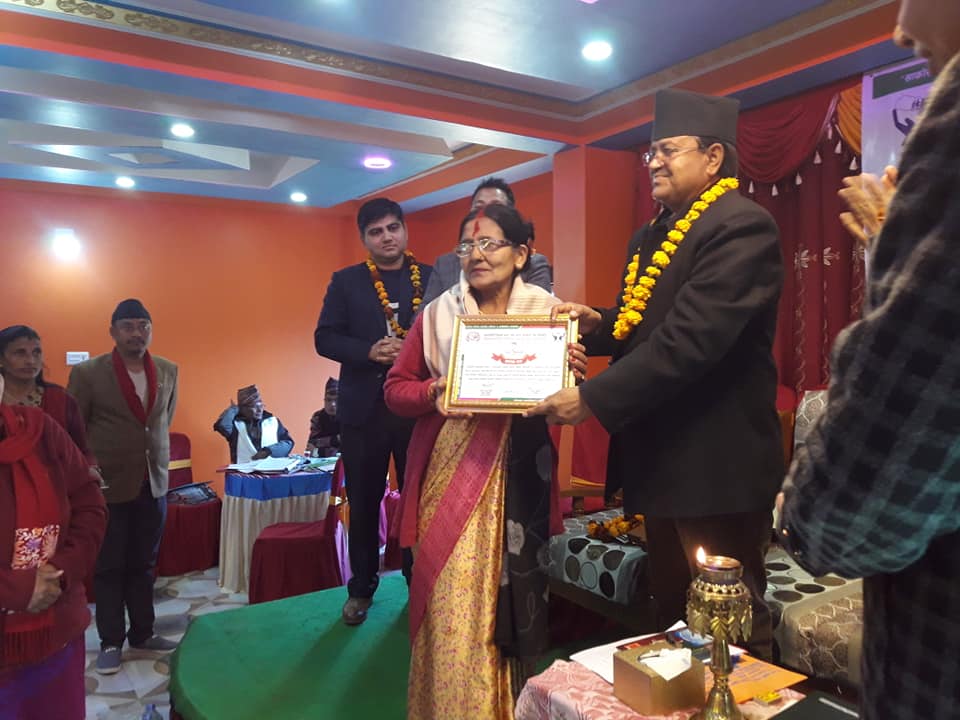 अर्घाखाँची जिल्ला बचत तथा ऋण सहकारी संघका अध्यक्ष प्रकाश भुसालको अध्यक्षता,उपाध्यक्ष पार्बति भुसालको स्वागत मनतब्य र संघका उपाध्यक्ष दोर्ण प्रसाद भुसालको सञ्चालनमा सम्पन्न कार्यक्रममा जिल्लामा सहकारी क्षेत्रको बिकास निर्माणमा अतुलनिय भुमिका निर्बाह गरेको भन्दै हरीपतारा बचत तथा ऋण सहकारी संस्था वाङ्लाका अध्यक्ष नरहरी श्रेष्ठ , सगरमाथा महिला बिकास बचत तथा ऋण सहकारी संस्था सितगंगाका भगवती बेल्बासे र पत्रकारीताको क्षेत्रबाट जिल्लामा सहकारीका गतिबिधिहरु जनतासामु पु¥याउन उल्लेखनिय भुमिका निर्बाह गरेको भन्दै पत्रकार श्याम घिमिरेलाई दोसल्ला र प्रमाणपत्र प्रदानगरी सम्मान समेत गरीएको थियो ।