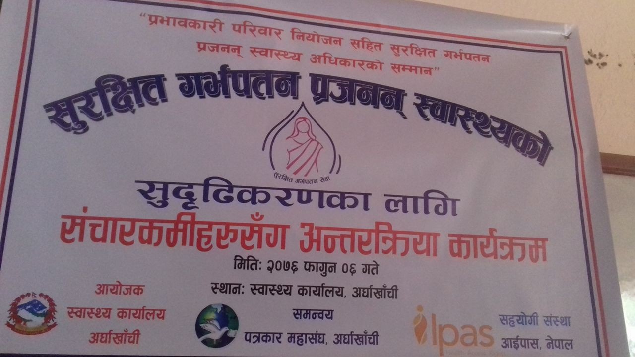 कार्यक्रम स्वास्थ्य कार्यालय अर्घाखाँचीको आयोजना पत्रकार महासंघ अर्घाखाँचीको समन्वय आईपास नेपालको सयोगमा सम्पन्न भएको हो ।