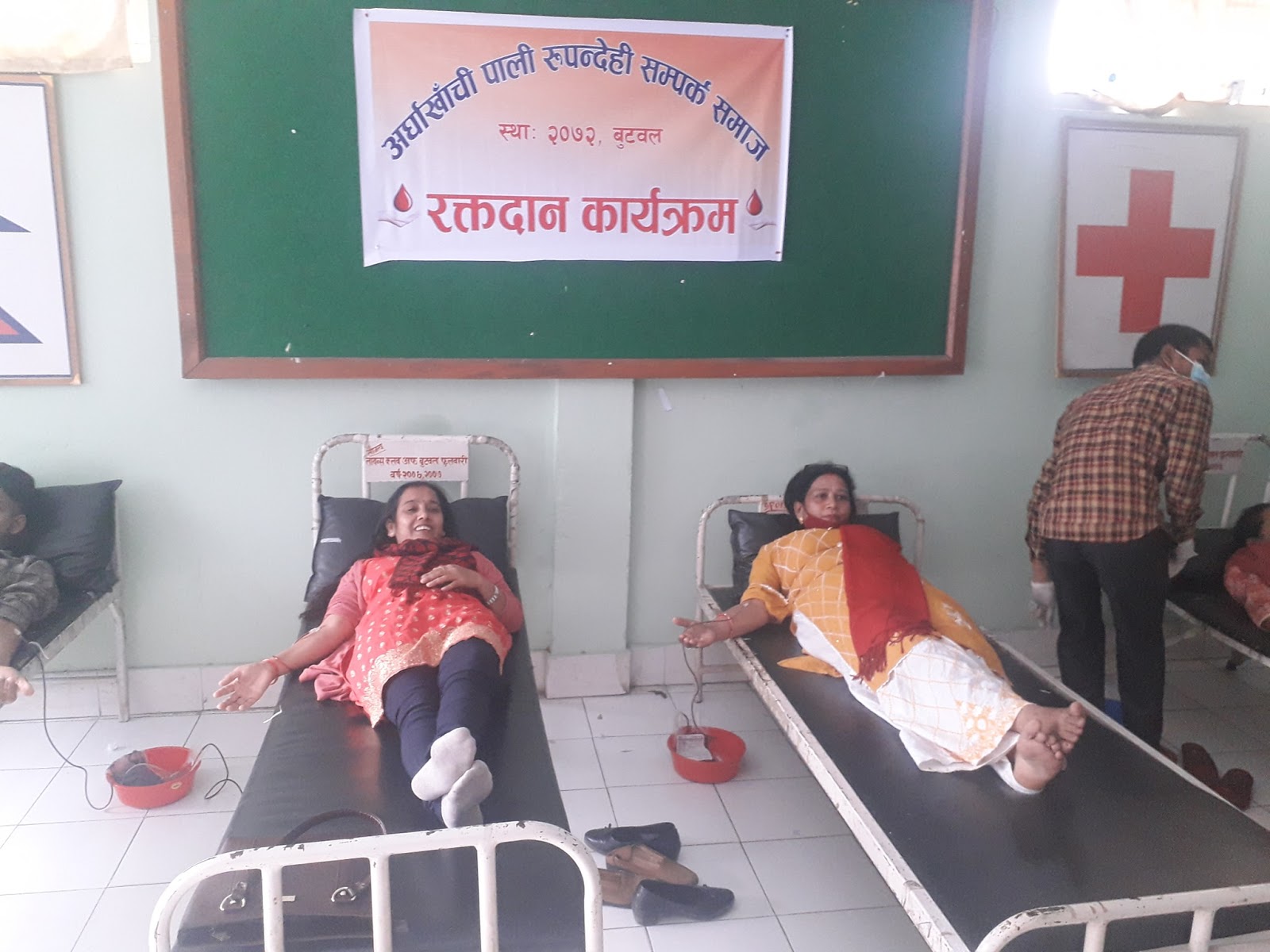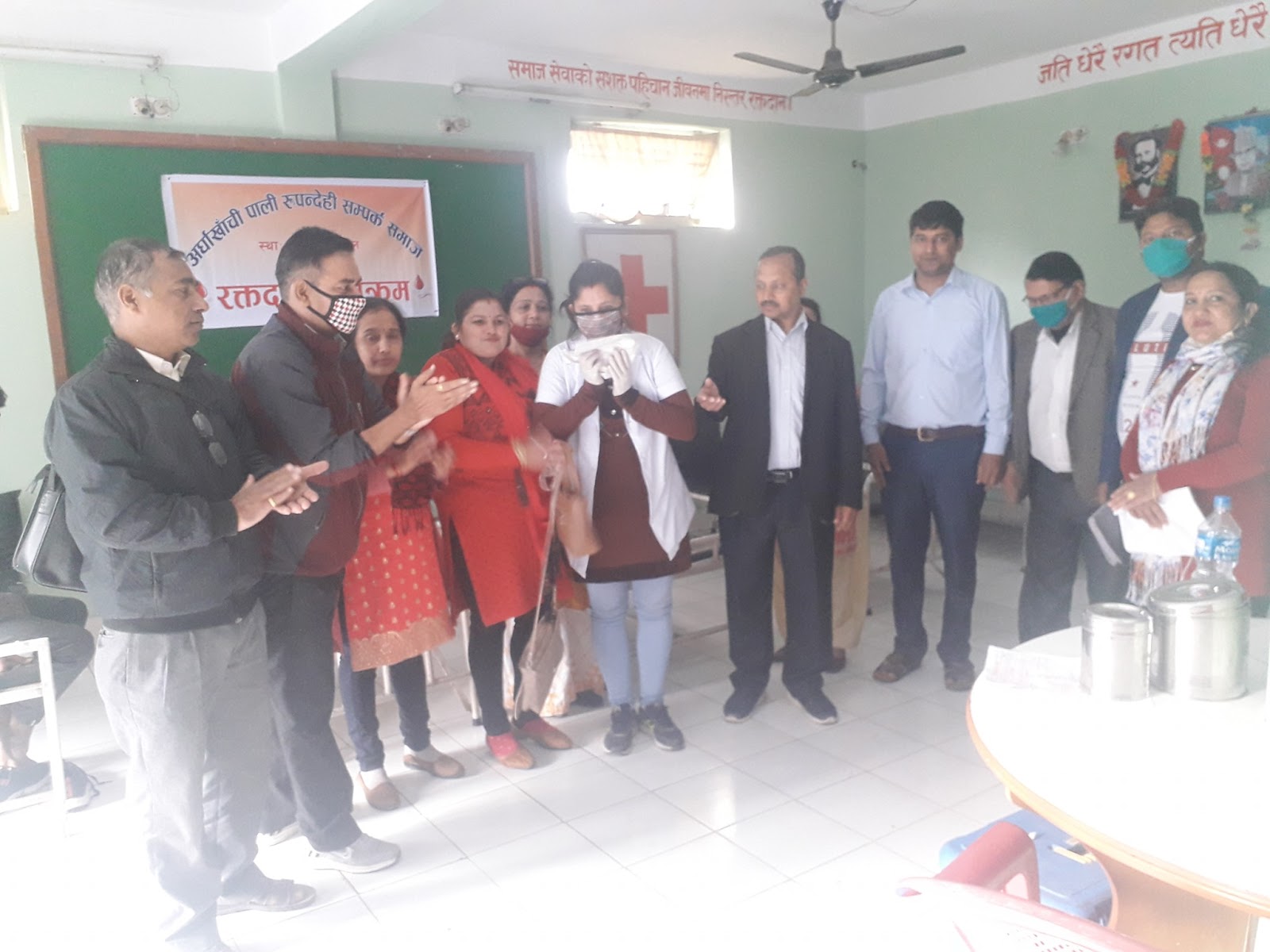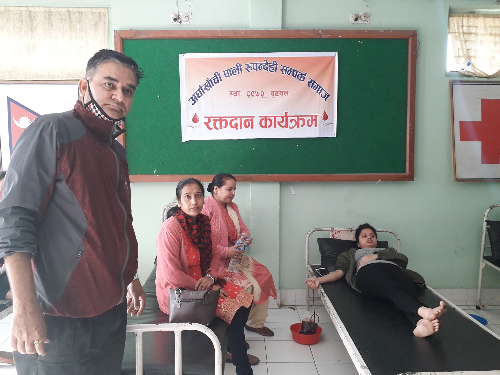 अर्घाखाँची पाली रुपन्देही सम्पर्क समाजको पाँचौ स्थापना दिवसको उपलक्ष्यमा बुटवलकै ब्लड बैंकको हलमा कोरोना भाइरसको त्रास बढीरहेको बेला रक्तदान कार्यक्रम बुटवलमा सम्पन्न भएको हो ।