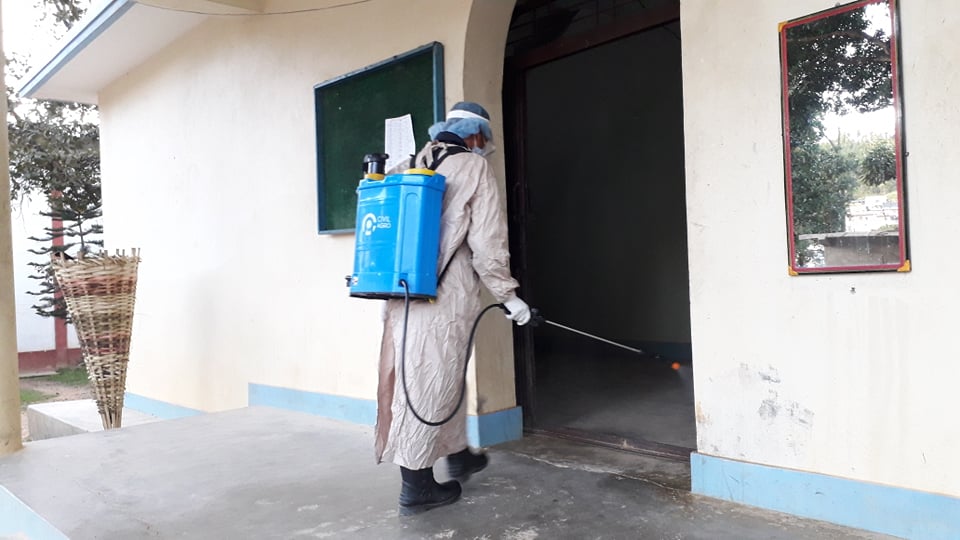 कोरोना भाईरस ( COVID-19) सङक्रमणबाट बच्नको लागि जिल्ला प्रहरी कार्यालय अर्घाखाँचीले आफ्नो कार्यालय परिसर, कार्यालय भवन र व्यारेकमा डिसईन्फेक्सन गरिएको स्प्रे गरेको हो ।