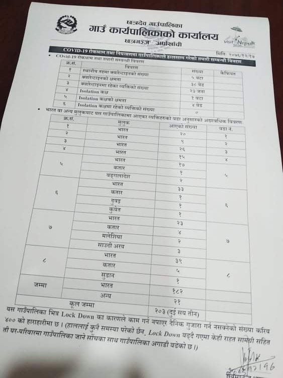 खन, अर्घाखाँची (अर्घाखाँचीडट्कम) । अर्घाखाँची जिल्लाको मालारानी गाउँपालिकामा भारत लगायत विदेशबाट अहिलेसम्म आउनेको संख्या २०३ पुगेको छ ।