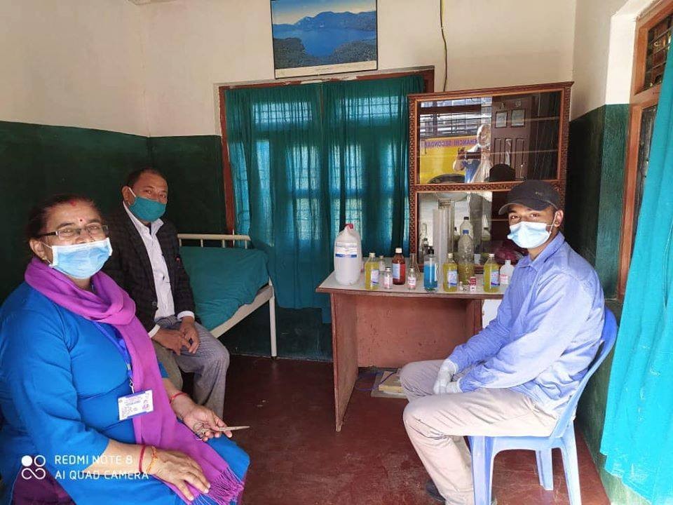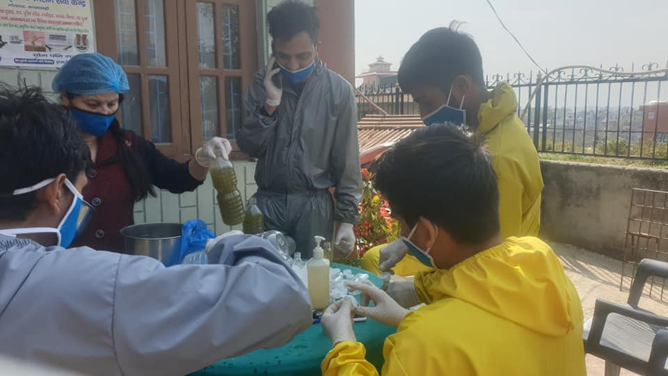 इथानोल, एलोबेरा, हाईड्रोजन पर अक्साइड र भिटामीन इ क्याप्सुल प्रयोग गरेर अर्घाखाँची आवसीय माविको विज्ञान प्रयोगशाला प्रयोग गरेर स्यानीटाइजर बनाएर वितरण गरेको उहाँले बताउनु भयो ।