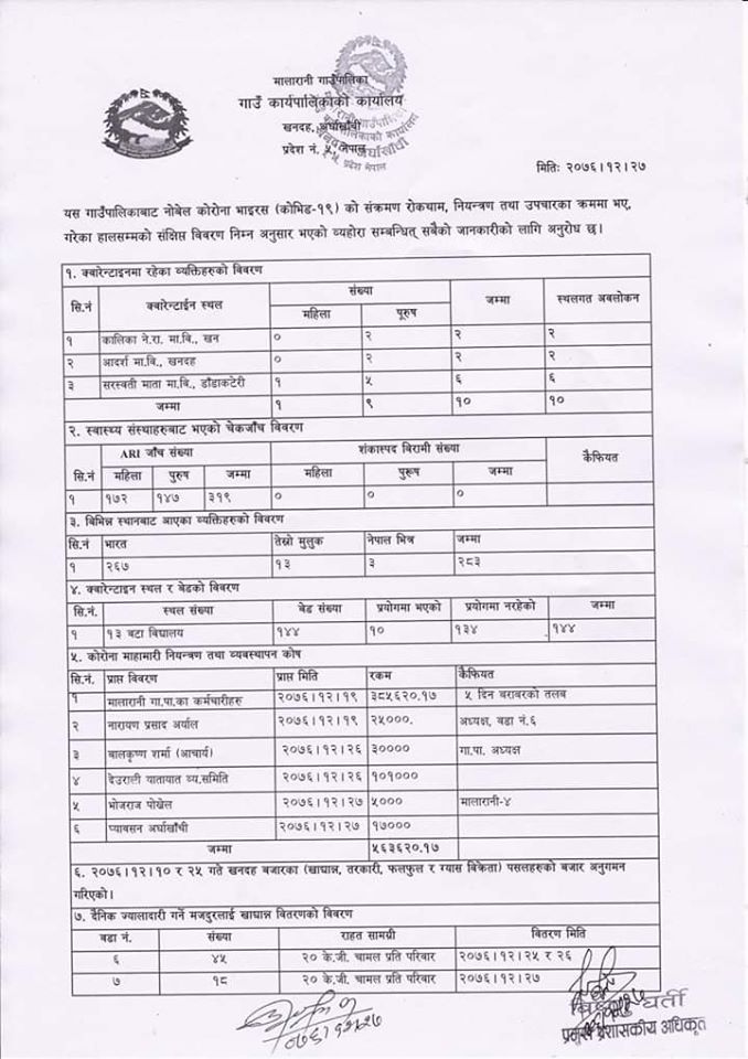 यस्तै मालारानी गाउँपालिकामा  भारत लगायत विदेशबाट अहिलेसम्म आउनेको संख्या २८३ पुगेको छ ।