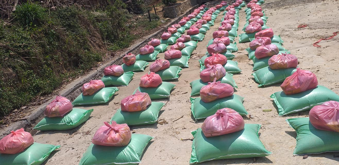 वडा नम्बर २ मा ८१ , वडा नम्बर ३ मा ५२ वडा नम्बर ४ मा २१५ र वडा नम्बर १३ मा १४७ घर परिवारलाइ राहत बितरण गरिएको छ । राहत तोकिएको मापडण्ड अनुसार प्रति परिवार २५ केजि चामल, ३ केजी दाल २ प्याकेट नुन, २ लिटर तेल वितरण गरिएको छ ।