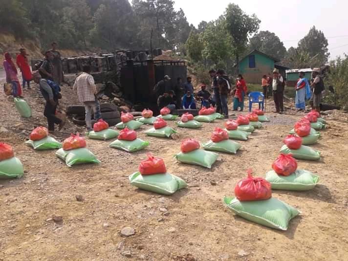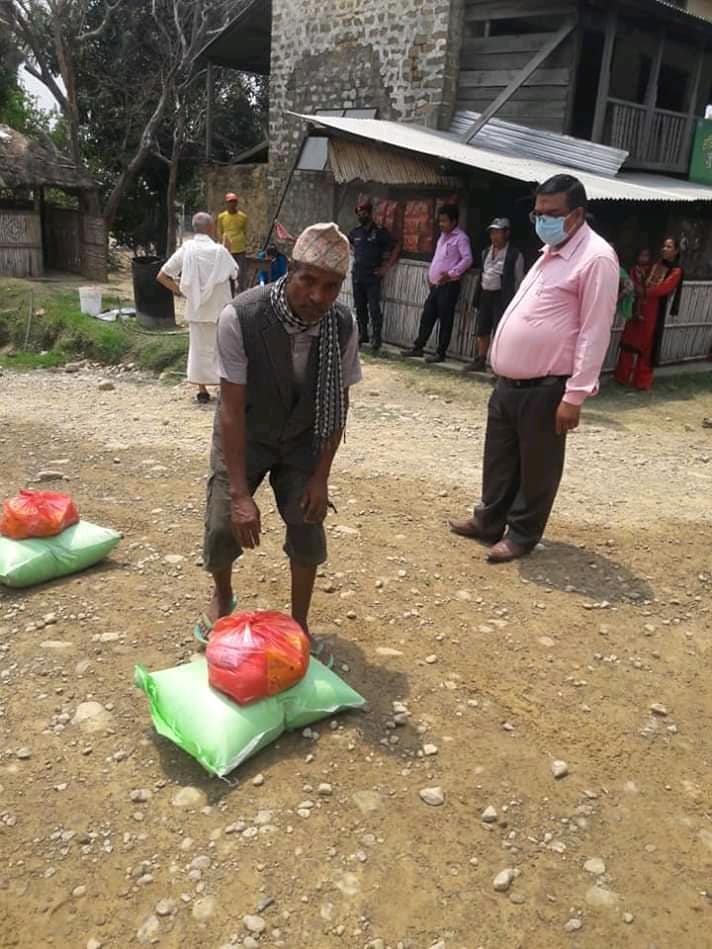राहत सामग्रीमा चामल २५ किलो, दाल ३ किलो, तेल २ लिटर र नुन २ पोका राहत सामग्री वितरण गरिएको अध्यक्ष गैरेले जानकारी दिनु भयो ।