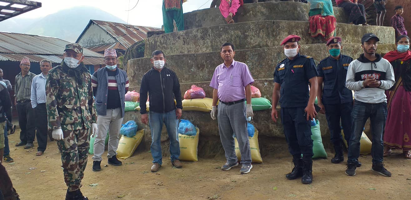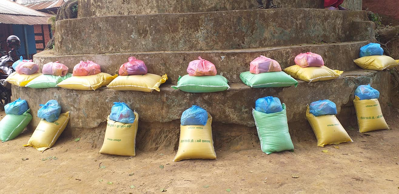जस अनुसार शुवर्णखाल र मन्द्रे मैदान, मौलाडाँडा गरि ८८ जना अति बिपन्न दैनिक ज्याला मजदुरी गरेर दैनिकी गुजारा गर्नेलाई यसै नगरपालिका प्रमुख सुर्य प्रसाद अधिकारी ,उपप्रमुख टीका रेस्मी,वाड अध्यक्ष बुद्धि कृष्ण पौडेल , जनप्रतिनिधी साथै इप्रका ठाडाका सहितको टिम, रामबाण गुल्मका प्रमुख ईस्वर काफ्ले सहितको टिम विभिन्न संघ सस्था,समाजका अगुवा ब्यक्तिहरु प्रत्रकारहरुको रोहबरमा चामल २५ किलो दाल ३ किलो २ तेल २ लिटर २ किलो नुन राहत बितरण गरिएको सितगङ्गा नगरपालिका वाड न. १ का अध्यक्ष बुद्धि कृष्ण पौडेलले जानकारी दिनु भएको छ।