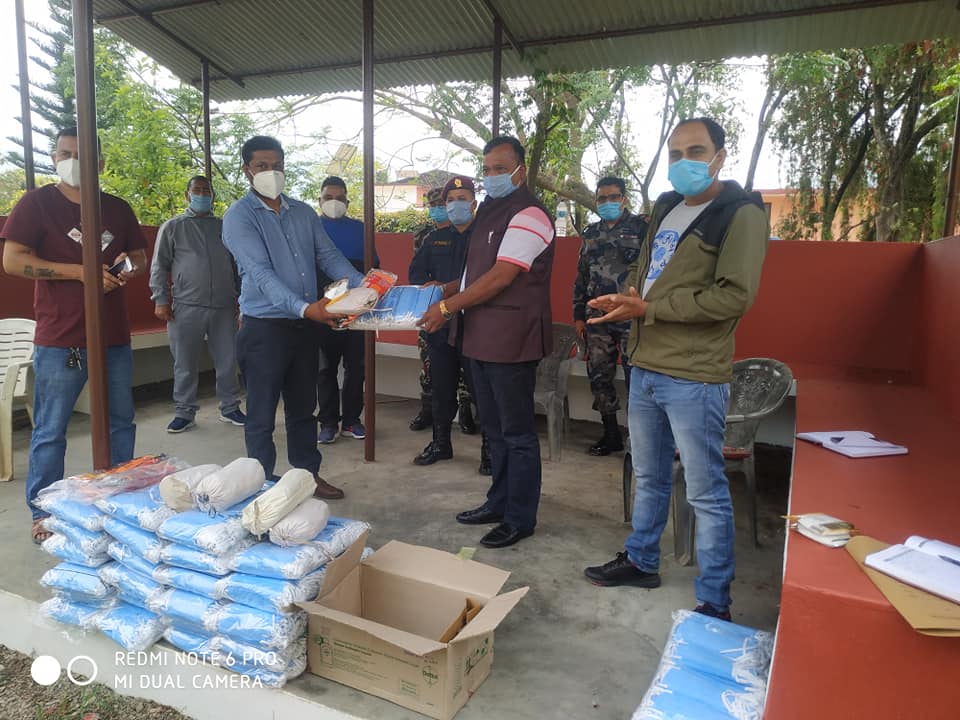 उहाँले सर्जिकल माक्स ७ हजार,पिपिई ५ पिस,स्यानेट्याशईरज २१ पिस प्रमुख जिल्ला विजयराज पाैडेल मार्फत जिल्लाका विभिन्न निकायलाई उपलव्ध गराउने गरि हस्तान्तरण गरिएकाे हाे ।