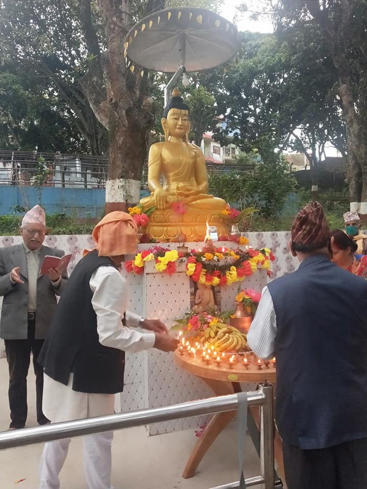 लकडाउनका कारण सानो भेला भएर २५६४ औँ बुद्धजयन्तीको अवसरमा सन्धिखर्कको शान्ति बगैचामा रहेको बुद्धको मुर्तिमा दीप प्रज्वलन गरिएको हो ।