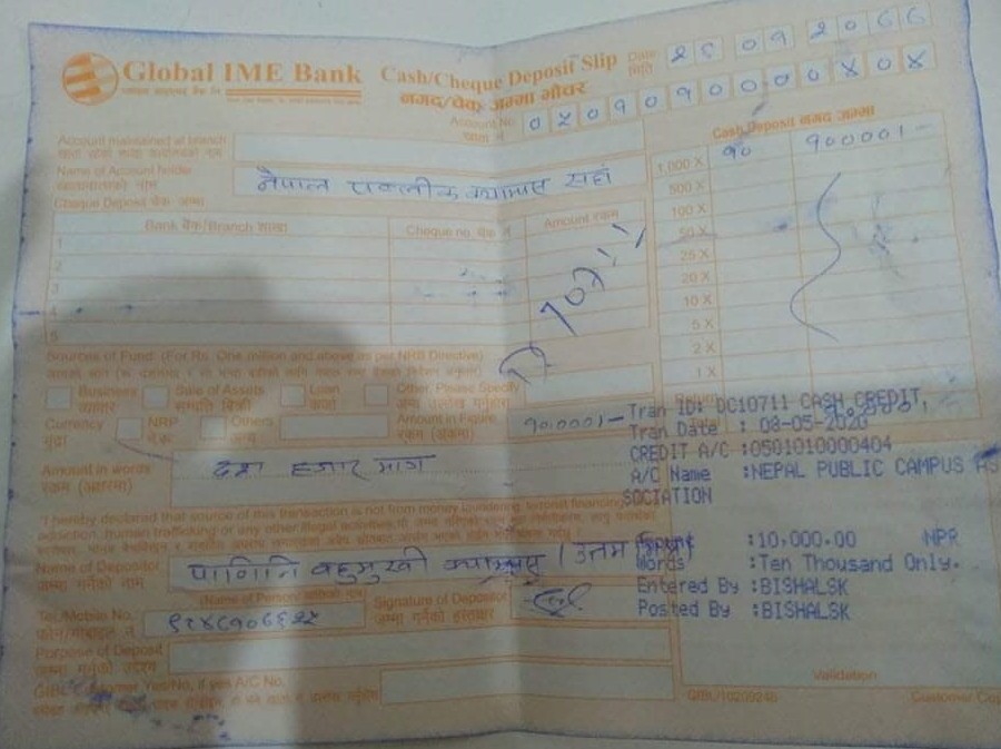 यस्तै नेपाल पब्लिक क्याम्पस संघ केन्द्रिय कार्यालय कोरोना (COVID-19) राहत कोषमा र१० हजार रुपैया गरी जम्मा रु. ३३२६० मात्र महामारीको रुपमा फैलिईरहेको कोरोना भाईरसको रोकथामका लागि सहयोग होस् भन्ने हेतुले सहयोग रकम उपलब्ध गराइएको छ ।