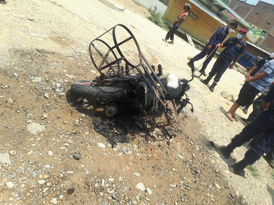 भने मोटरसाइकल जलेर पुर्ण रुपमा नस्ट भएको छ ।