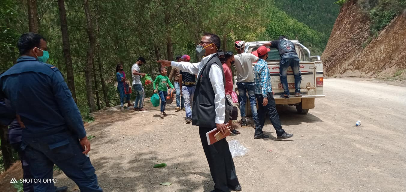 नगर उपप्रमुख ठाकुर कुमार वि.कको पहलमा भारतका विभिन्न ठाउँवाट सन्धिखर्क भित्रिएकाहरुलाई गाडीकाे व्यवस्थापन गरि आटिकापाटा र फुदवाङको बिचमा पर्ने औल्लाखाेलाबाट सम्बन्धित वार्डमा पठाईएको थियो ।
