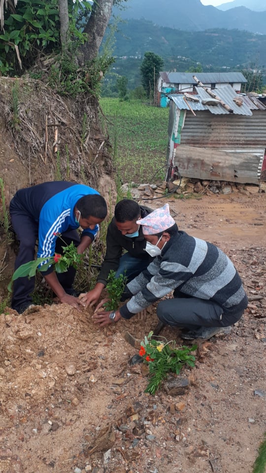 बृक्षरोपणका लागि अभियान्ता बिष्णु सुवेदीले विभिन्न प्रकारका फुलका बृक्षहरु ल्याउनु भएको थियो।