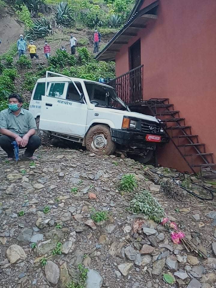 एम्बुलेन्स कमल पाण्डेको घरमा ठोकिएको थियो । दुर्घटनाको कारण खुल्न सकेको छैन् । सोमबार खाँचीकोटकाे आदर्श माबि १० जना, चन्द्र प्रभा माबि क्वारेन्टाइन ५ जना गरी १६ संक्रमित फेला परेका थिए ।