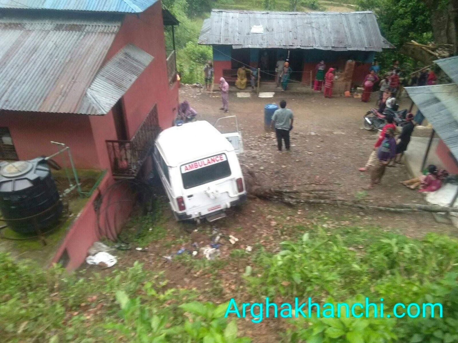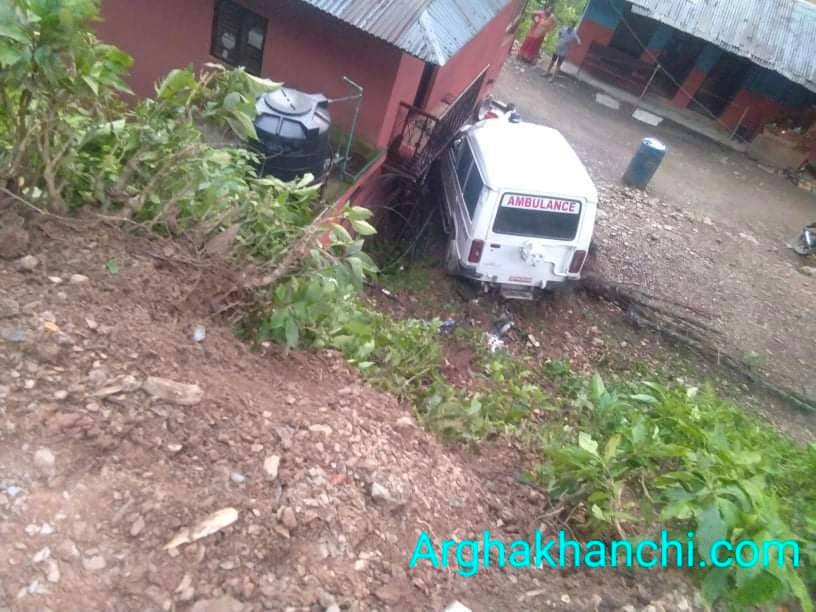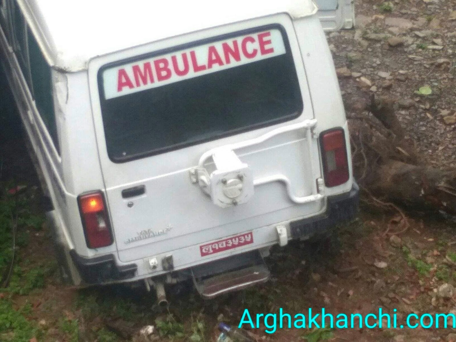 खाँचीकोटको चन्द्र प्रभा मावी क्वारेन्टाइनका ५ जना काेराना संक्रमितलाई लिएर सन्धिखर्कको हटारीनेटा आईसाेलेशनमा लिएर जाने क्रममा भुतपुर्व सैनिकद्वारा सन्चालित लु १ च ३५३५ नम्बरको एम्बुलेन्स फर्जेङ खोला बजारमा दुर्घट्ना भएको हो ।