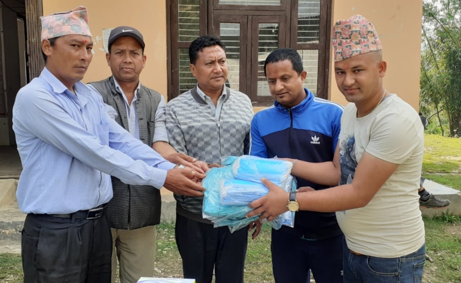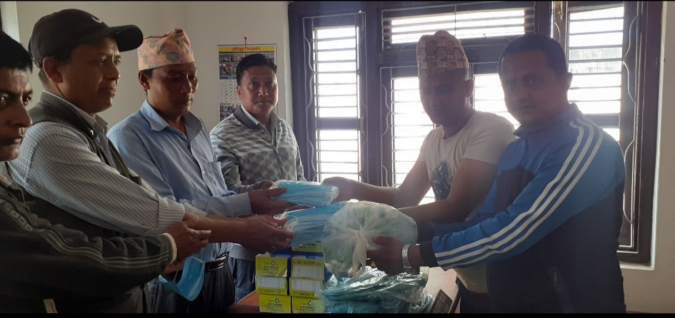 उहाहरुले केही अघि वार्डमा बुझ्दा स्वास्थ्य सामाग्री नभएको भनेपछि सहयोगी हात फैलाउनु भएको थियो नभन्दै काठमाडौंमा रहेको पामिर ईन्टरनेसनलका सन्चालक खडानन्द पाण्डे र कमल पाण्डेको सहयोगमा पिपीई ५ पिस, सेनिटाईजर ३० पिस, पन्जा १००० पिस, फेस माक्स २०० पिस एन95 ३पिस उपलब्ध गराउनु भएको थियो।