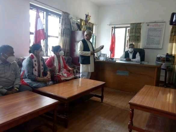 नेपाली काङ्ग्रेस जिल्ला सभापती बिष्णु प्रसाद खनाल मुस्कान , उपसभापति शान्ता भण्डारी , तरुण दल जिल्ला अध्यक्ष नारायण खड्का ,नेपाल बिद्यार्थी संघ जिल्ला अध्यक्ष भरत भट्टराई लगायतको टोलीले सरकारले कोरोना नियन्त्रणमा देखाएको उदासिनता , मुलुकमा भएका पछिल्ला जघन्य अपराध , जातिय भेदभाव , भस्ट्राचार जस्ता गतिविधि एवं अमानवीय ब्यबहारहरु तत्काल बन्द गर्न भन्दै प्रमुख जिल्ला अधिकारी बिजय राज पौडेल मार्फत प्रधानमन्त्रीलाई ज्ञापन पत्र बुझाएको हो ।