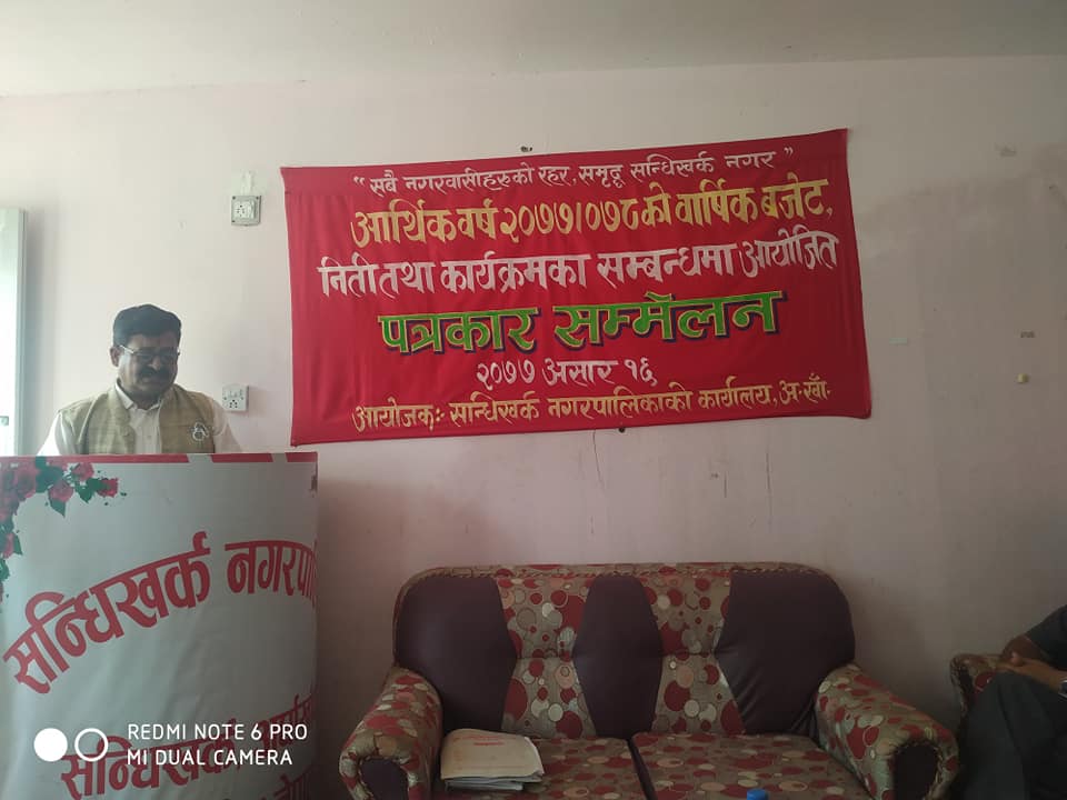 सन्धिखर्क,  अर्घाखाँची (अर्घाखाँचीडट्कम) ।  अर्घाखाँची जिल्लाको सन्धिखर्क नगरपालीकाले आर्थिक वर्ष २०७७-७८ को बार्षिक बजेट बिवरण जानकारी गराउन राजनीतिक दलका पत्रकारहरु तथा आफ्ना पक्षमा समाचार बनाउनेसँग भेटघाट कार्यक्रम सम्पन्न गरेको छ ।