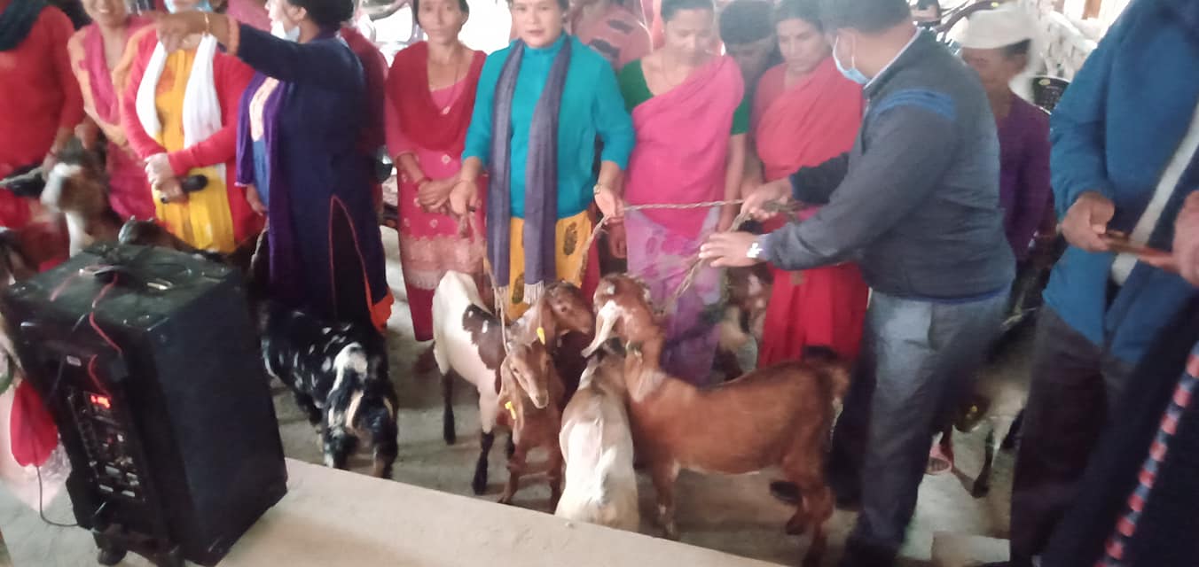 कार्यक्रममा स्थानीय जात २४ वटा बाख्रा कृषकहरूको लागि वितरण गरियो वितरण कार्यक्रमसंगै मानिस र बाख्राको समेत विमा गरिएको थियो ।