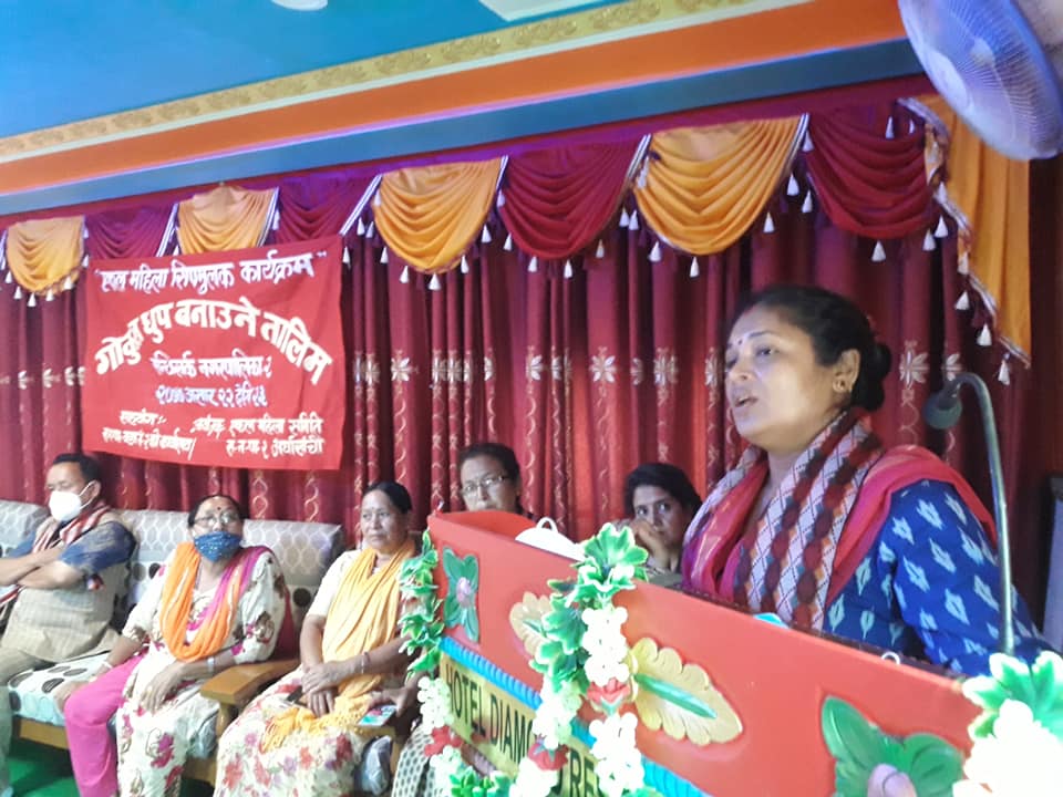 चुत्राबेसी,  अर्घाखाँची असार २२ । मानव अधिकारका लागि महिला, एकल महिला समूह सन्धिखर्क नगरपालिका वार्ड नं २ चुत्राबेसीकाे आयाेजनामा सनपा २ मा गाेकुल धुप बनाउने तालिमकाे थालनी गरिएकाे छ ।
