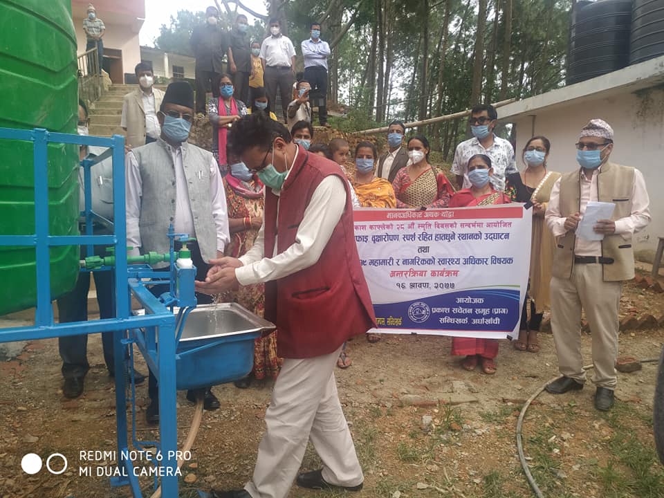 प्रकाश सचेतन समूह (प्राग) अर्घाखाँचीकाे आयाेजनामा पाणिनी क्याम्पस सन्धिखर्ककाे हातामा बृक्षारोपण ,हातको प्रयोग बिना खुट्टाको सहायताले हातधुने नयाँ प्रबिधिको स्थापना र कोरोना भाइरस महामारी र नागरिकको स्वास्थ्य अधिकार बिषयक अन्तरक्रिया कार्यक्रम गरि दिवस मनाईएकाे हाे ।