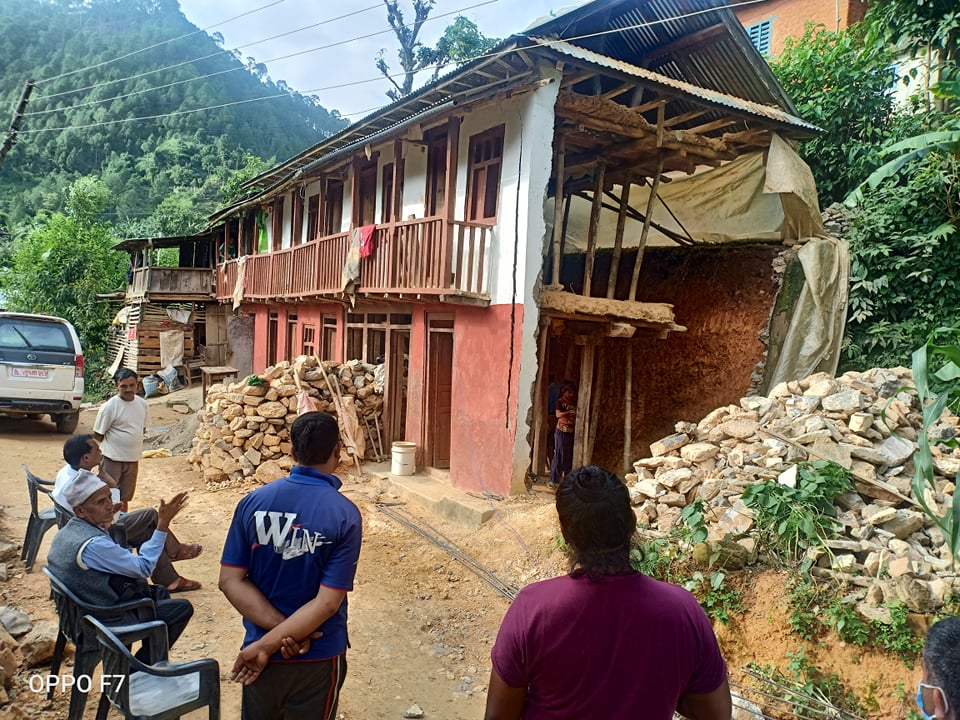 डिभर्नाको जोगिमारेका बालकृष्ण आचार्यको घर गत साउन ११ गते लगातार वर्षाका कारण भत्किदा विस्तापित हुने अवस्था आएको हो ।