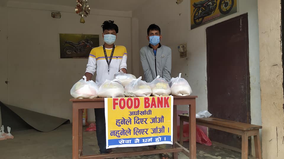 समाजसेवी तथा सामाजिक अभियान्ता सचिन पाण्डेको नेतृत्व तथा हलिम खान, समाजसेवी कमला भण्डारी बिष्णु क्षेत्री सहितको पहलमा अर्घाखाँची फुड बैंकको स्थापना गरि सन्चालन गरिएको छ ।
